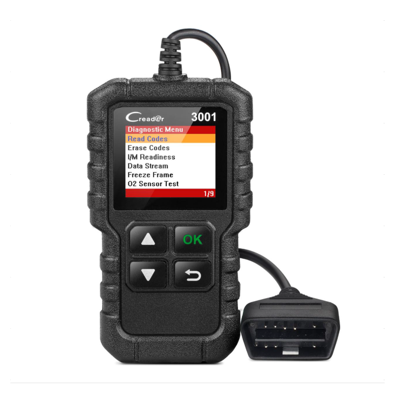 El CReader 3001 es un lector de código de diagnóstico a color de tamaño pequeño con funciones completas de diagnóstico OBDII/EOBD y cumple con protocolos como ISO9141-2, ISO14230-4, SAEJ1850 e ISO15765-4. Cuenta con una pantalla a color de 1,77 pulgadas y función de diagnóstico de códigos de avería. Se puede actualizar mediante USB.