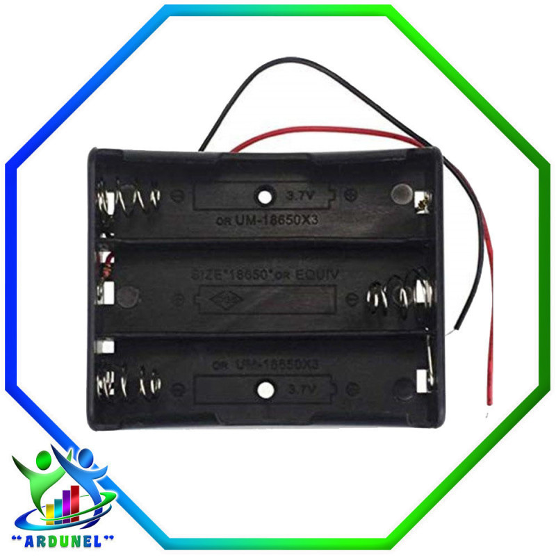 Porta pilas para pilas 18650, fabricado en plastico de color negro que permite que una o varias pilas queden fijas para poder alimentar cualquier circuito electrico.