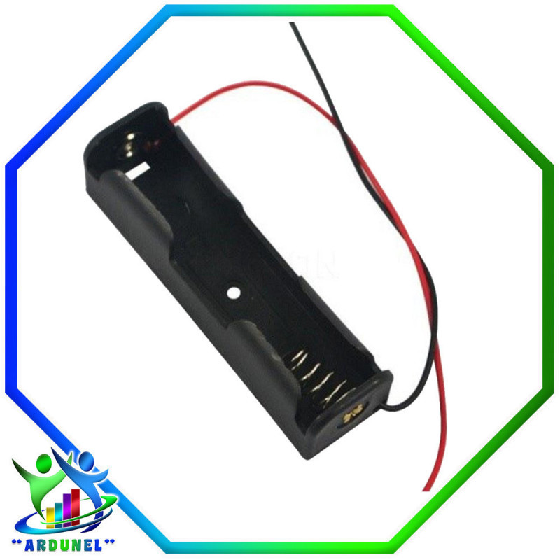 Porta pilas 18650, fabricado en plastico de color negro que permite que una pila quede fija para poder alimentar cualquier circuito electrico.