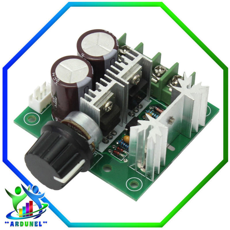 El Controlador de Velocidad en un rango de 12 V a 40 V permite controlar cargas en DC por medio de Modulación de Anchos de Pulso PWM el cual es ajustable por medio de la perilla. Este proporciona una corriente continua de 10 A